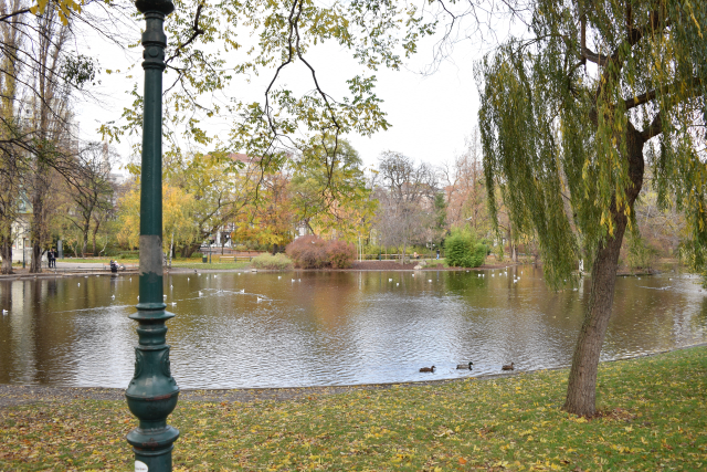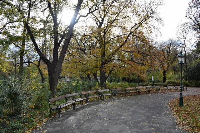 公園内は落ち葉が沢山。カラカラカラ~と風に舞う落ち葉。季節の中で秋が一番大好き。ウィーンの秋の中に今いるなんて、幸せ。本当に幸せ。