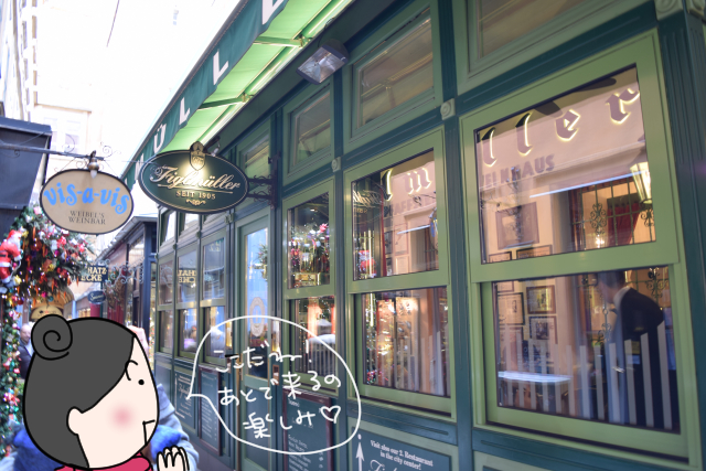 しばらくすると、今日の14時にランチの予約を入れているお店、フィグルミュラーの近くに来たので、ちょっと場所を確認がてら行ってみる。わ~、今ちょうどお昼時だからちょっと混んでるね。