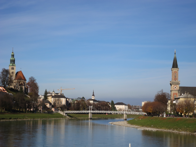 重いカメラをぶら下げながら歩いて旧市街へと向かう。途中のザルツァッハ川(Salzach)にかかる橋からの景色がとても綺麗・・・。