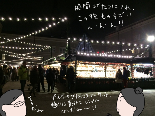クリスマスマーケットが開催されている広場に行くと、やっぱり昼間よりたくさんの人が!