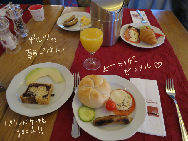 朝食へ。このホテルもビュッフェ。かわいらしい感じのお部屋。