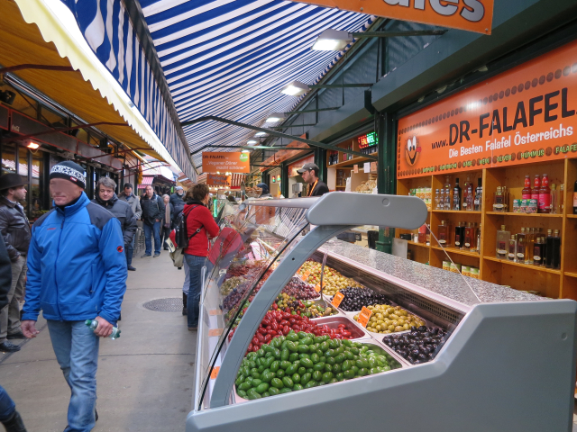今日は、ナッシュマルクト(Naschmarkt)という市場と、蚤の市に行く予定です。地下鉄U1に一つ乗って、カールスプラッツ駅から、テクテクと歩いて行きます。暫くすると、市場の入り口が見えてくる。