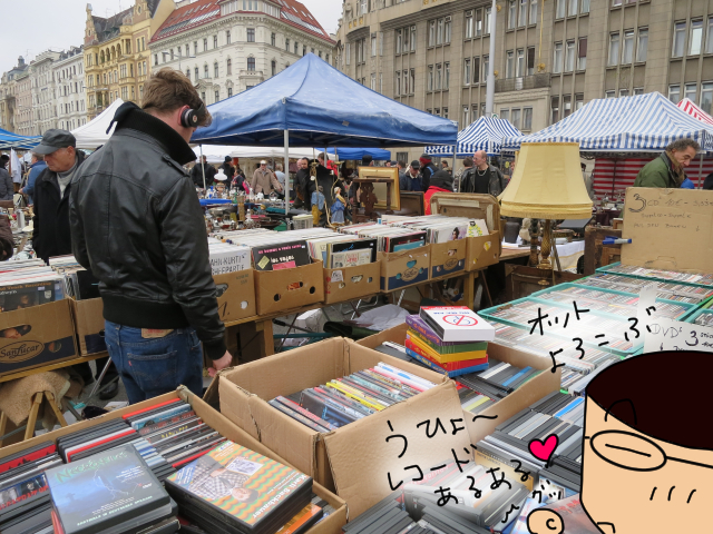 オットのお目当ては中古レコード。しばらく歩くと、あったあった、中古レコード屋さん。みんな、探してるね~。