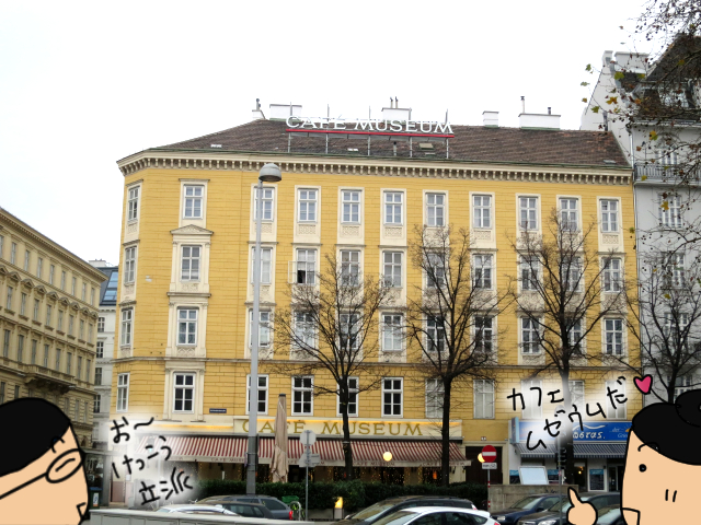 ※カフェムゼウムは、画家クリムト、シーレ、ココシュカをはじめ、作家カール・クラウス、 エリアス・カネッティ、建築家オットー・ワーグナー、アドルフ・ロース などがここの常連客だったというカフェ。