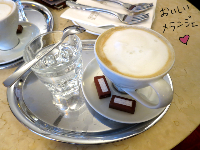 美味しいメランジェを飲みつつ、食べ終える。やっぱりカスタードは全部食べられなかった~。