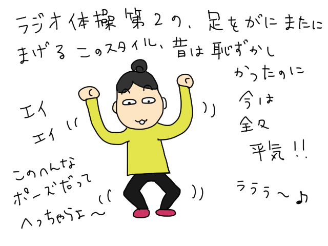すると・・!ら、ラジオ体操、なめてました・・!第1、第2、続けて真剣にやると結構大変・・!