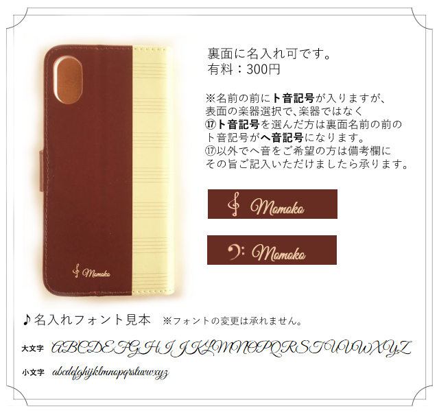 好きな楽器とお名前入りでちょっぴり特別なスマホケースができあがります♪